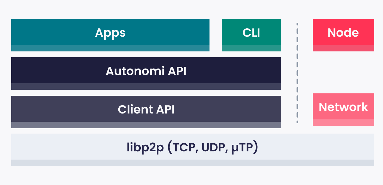<figure><img src="https://content.gitbook.com/content/IpImJ7Nsy0X1C9wYuy6V/blobs/ws0pcGmaYiQFxmhkzwfh/image.png" alt=""><figcaption><p>The Autonomi Network Stack (to be updated for v2)</p></figcaption></figure>