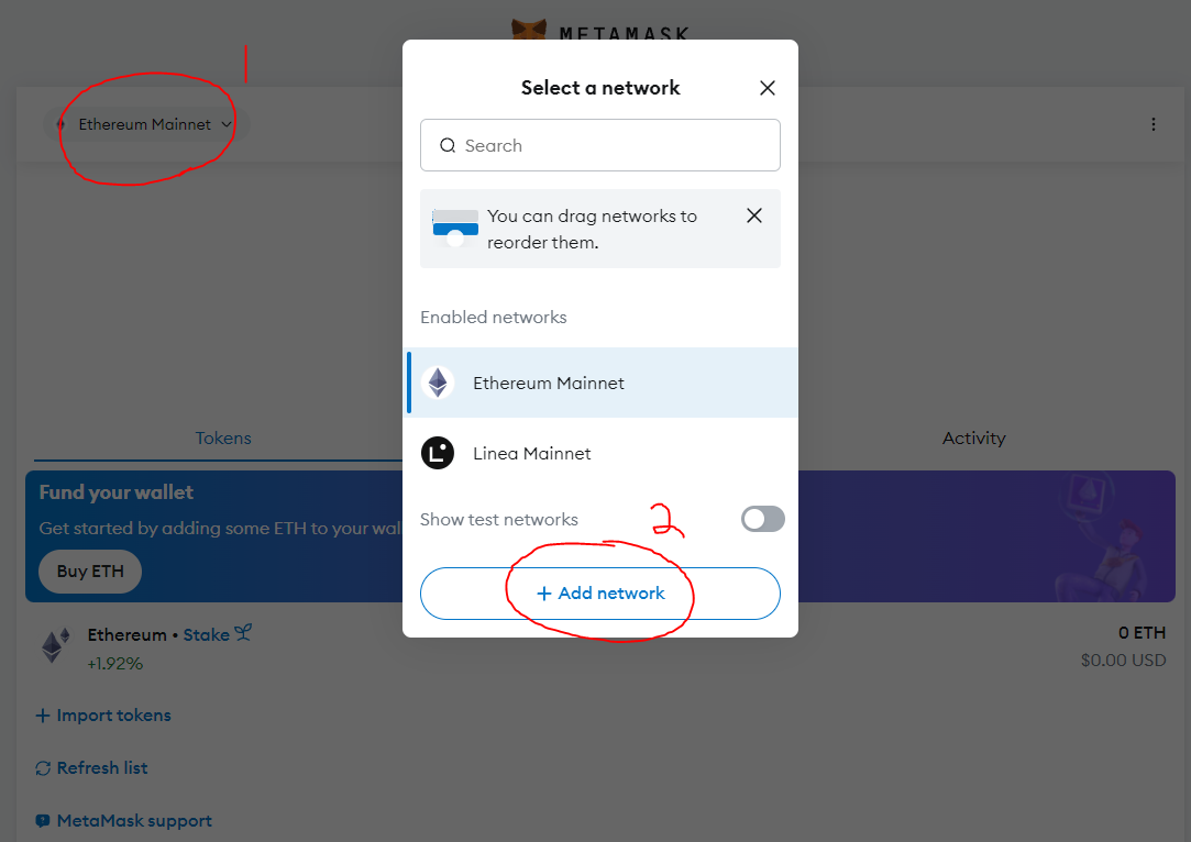 At the top left, **click where it says Ethereum Mainnet**