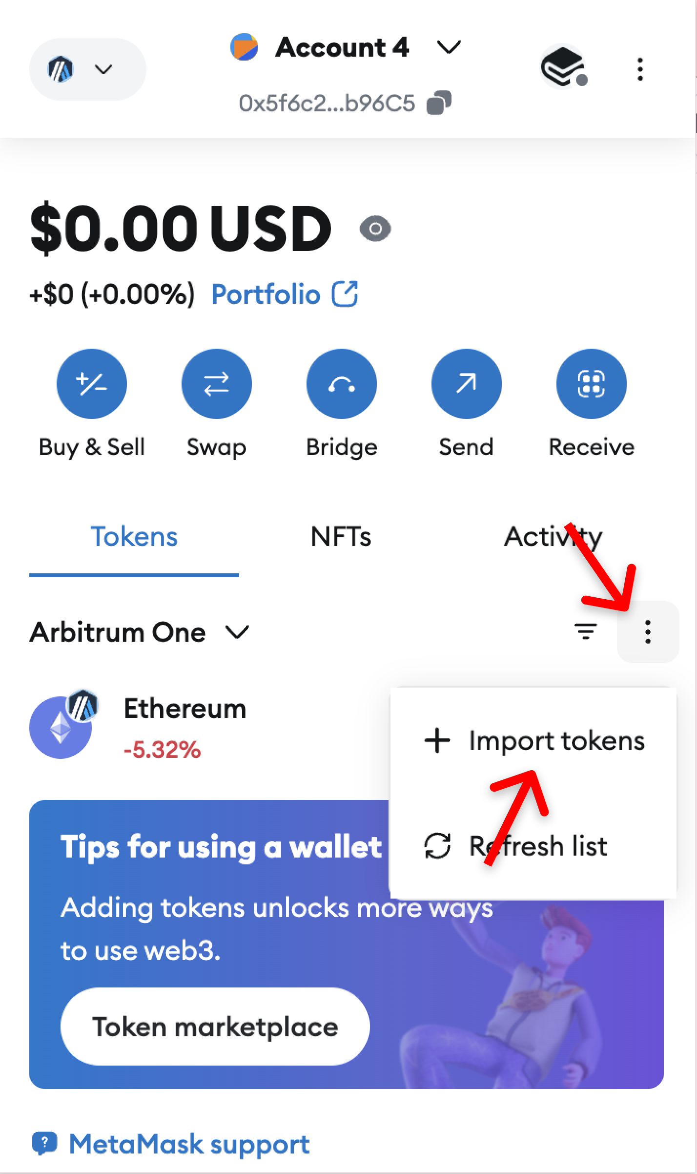 Once you have [added and enabled the Arbitrum Network](https://docs.autonomi.com/token/using-autonomi-tokens/holding/add-arbitrum-network) you'll need to import the Autonomi Network Token contract into your wallet so you can see any tokens you receive.